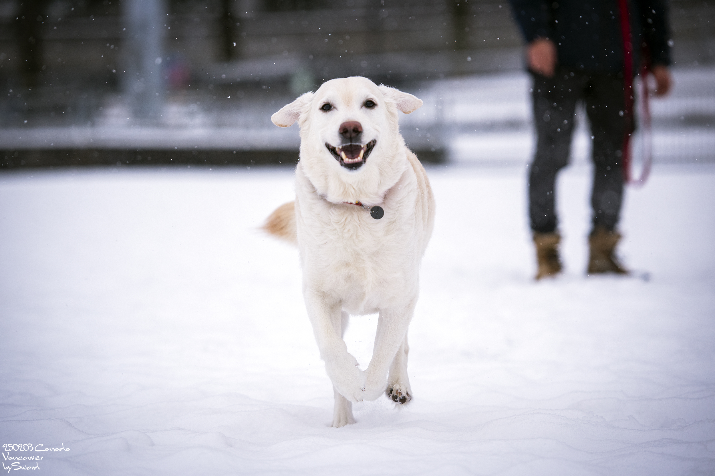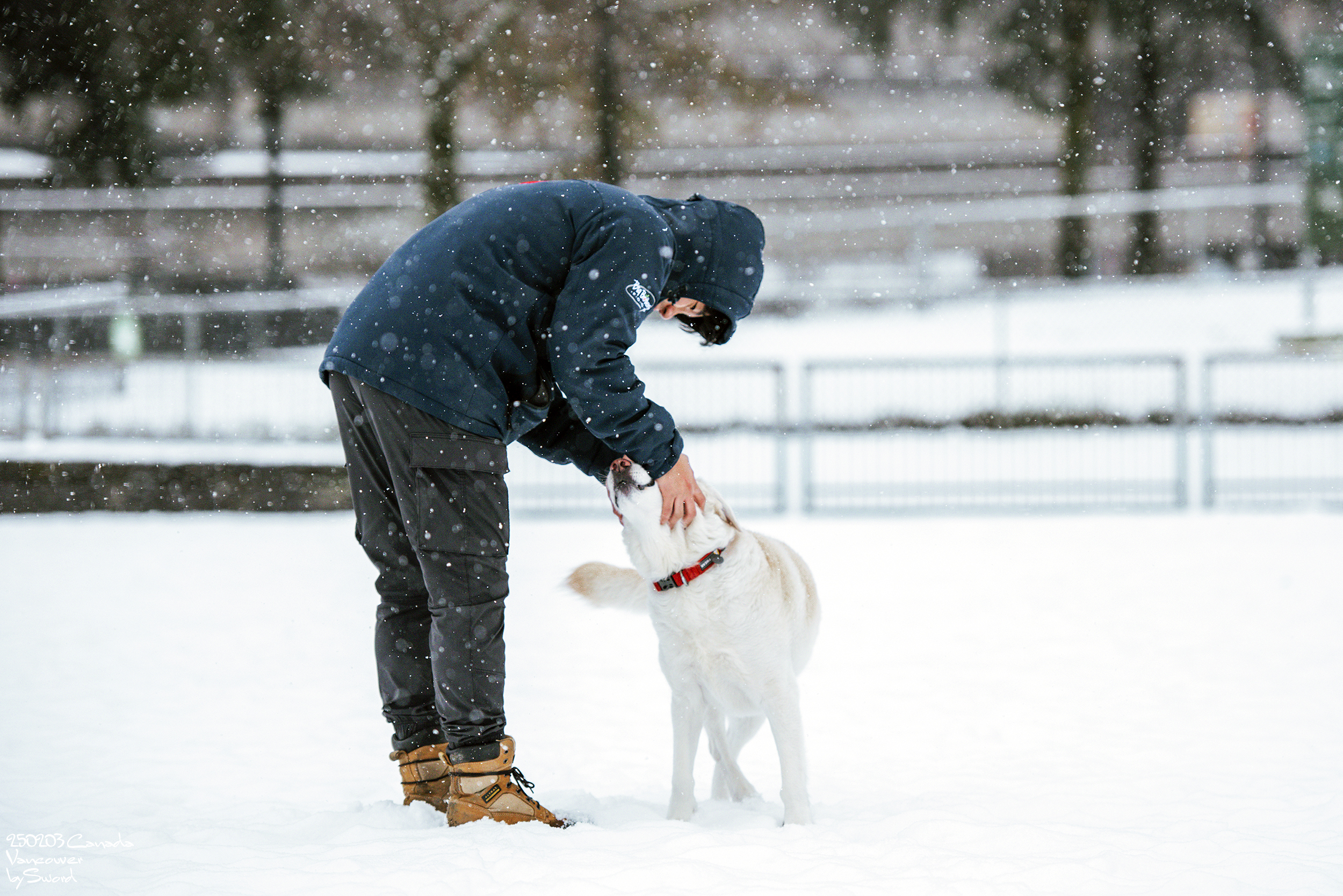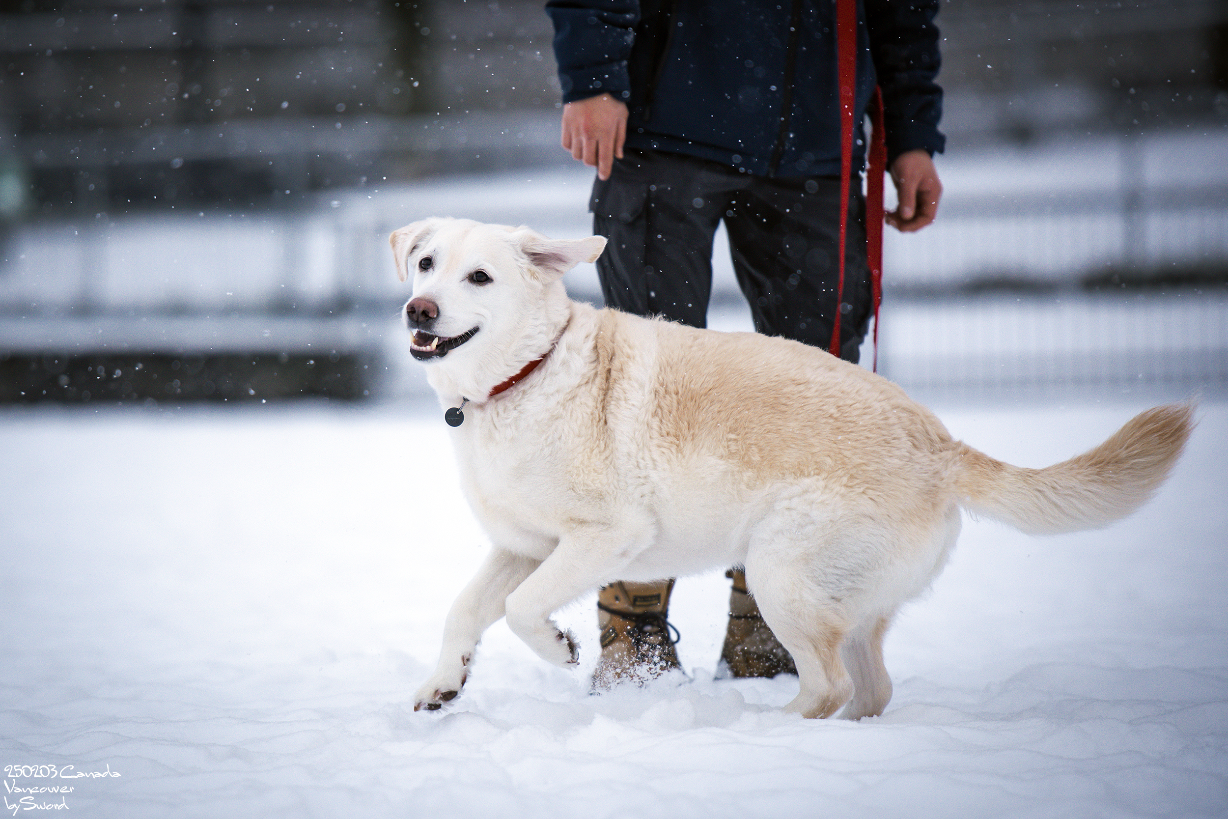 신나는 개를 위해 추워서 손이 새빨개졌는데도 들어가지 않고 놀아주는 견주에 감정이입 ㅠㅠㅠ